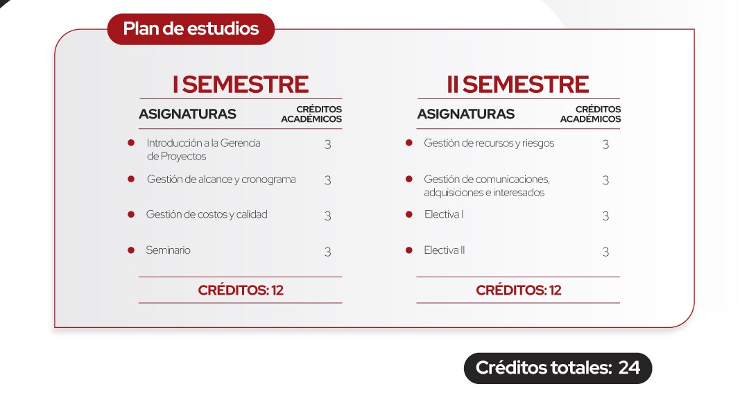 La Especialización en Gerencia de Proyectos está orientada a formar profesionales capaces de liderar, planear, ejecutar y evaluar proyectos en diferentes sectores productivos y de servicios, aplicando metodologías, herramientas y buenas prácticas reconocidas a nivel nacional e internacional. El programa busca desarrollar competencias estratégicas y operativas en la gestión del alcance, tiempo, costo, calidad, recursos humanos, riesgos, interesados, adquisiciones y comunicaciones, asegurando que los proyectos generen valor y se alineen con los objetivos organizacionales.