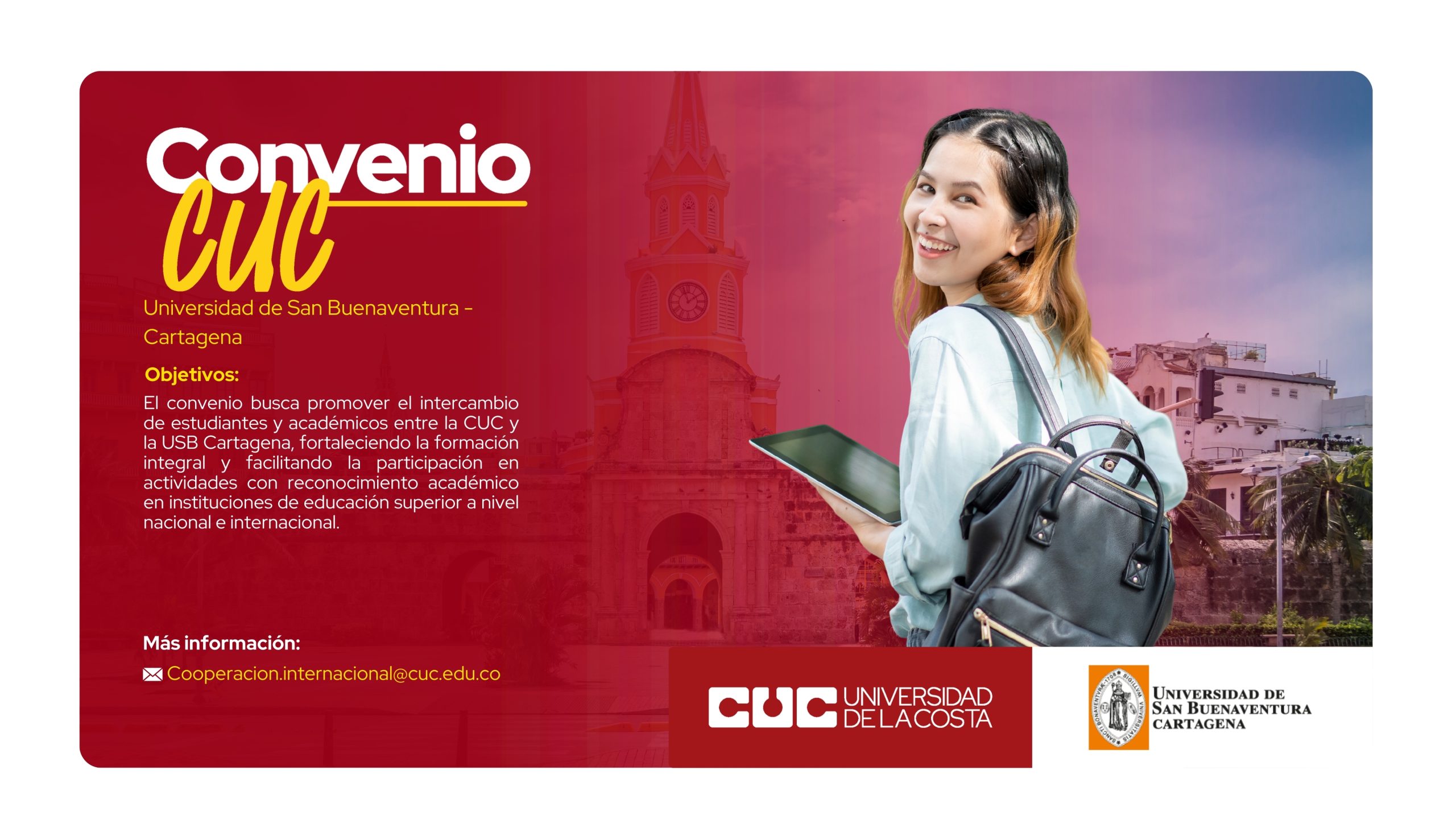 El convenio busca promover el intercambio de estudiantes y académicos entre la CUC y la USB Cartagena, fortaleciendo la formación integral y facilitando la participación en actividades con reconocimiento académico en instituciones de educación superior a nivel nacional e internacional.