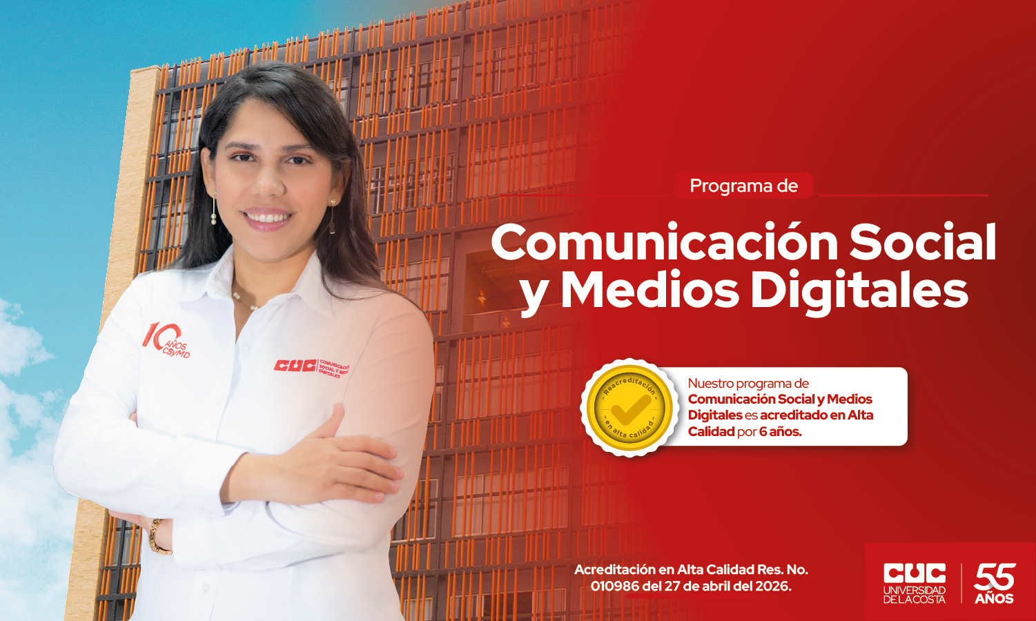 El Ministerio de Educación Nacional otorgó la Acreditación en Alta Calidad por un periodo de seis (6) años al Programa de Comunicación Social y Medios Digitales, en modalidad presencial, según resolución expedida tras concepto favorable del Consejo Nacional de Acreditación (CNA).