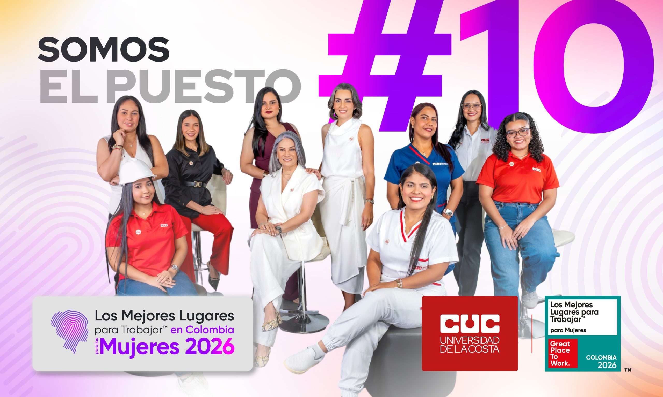En la Universidad de la Costa, el talento femenino no solo está presente: es protagonista del desarrollo institucional. Hoy, la institución recibe la certificación Great Place to Work for Women y se ubica en el puesto #10 del ranking nacional en las organizaciones entre 201 y 600 colaboradoras, un reconocimiento internacional que destaca a las organizaciones que promueven entornos laborales inclusivos, equitativos y con oportunidades reales de crecimiento para las mujeres.