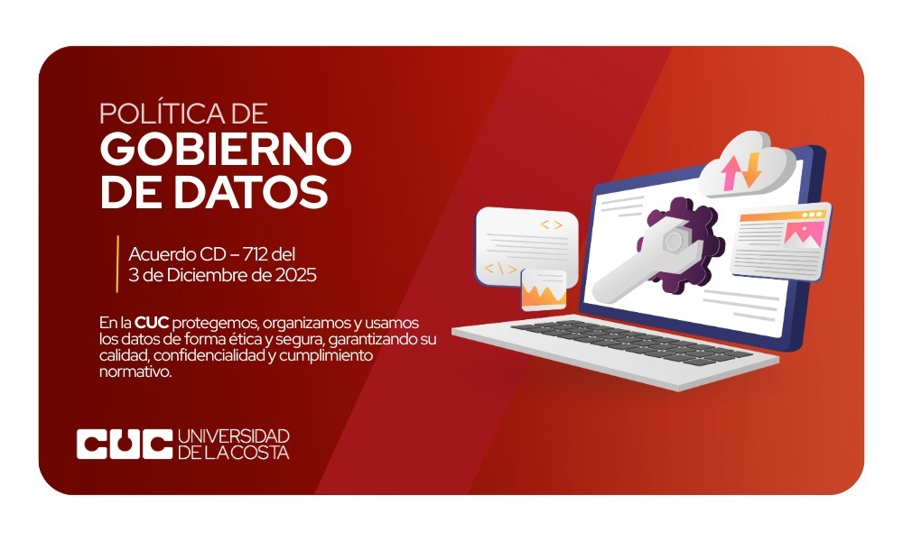 En la Universidad de la Costa protegemos y gestionamos la información con ética, seguridad y calidad. La Política de Gobierno de Datos fortalece la confianza y respalda cada decisión institucional. Conócela y sé parte de nuestra cultura de datos.