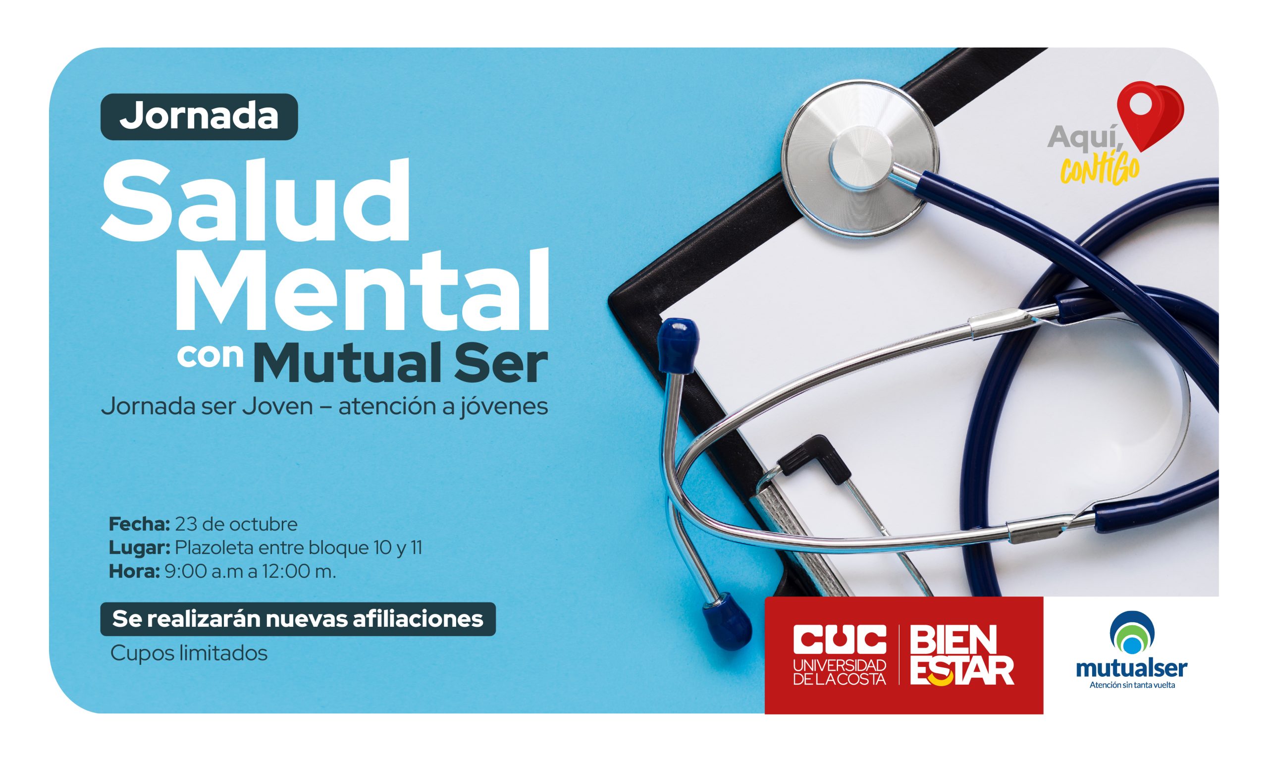Desde la Vicerrectoría de Bienestar Universitario a través de la Coordinación de Salud Integral queremos invitarte a participar de los servicios integrales (psicología, asesorías de planificación familiar, consultas de enfermería y taller educativo sobre salud mental) que Mutual Ser tiene para sus afiliados y nuevas afiliaciones a los interesados, este 23 de octubre 09:00am a 12:00m.