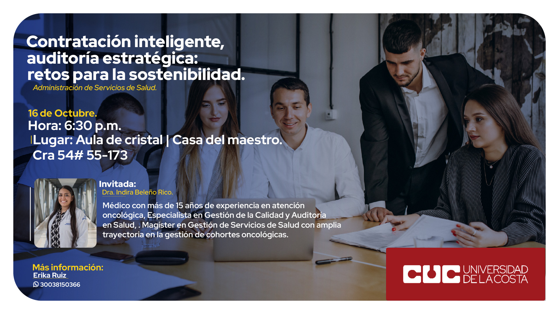 Te invitamos a participar de una noche ente colegas, en un espacio denominado: ‘Contratación inteligente, auditoría estratégica: retos para la sostenibilidad’, el cual se llevará a cabo el próximo jueves 16 de octubre a partir de las 6:30 p.m. en el Aula de Cristal de la Casa de Maestro.