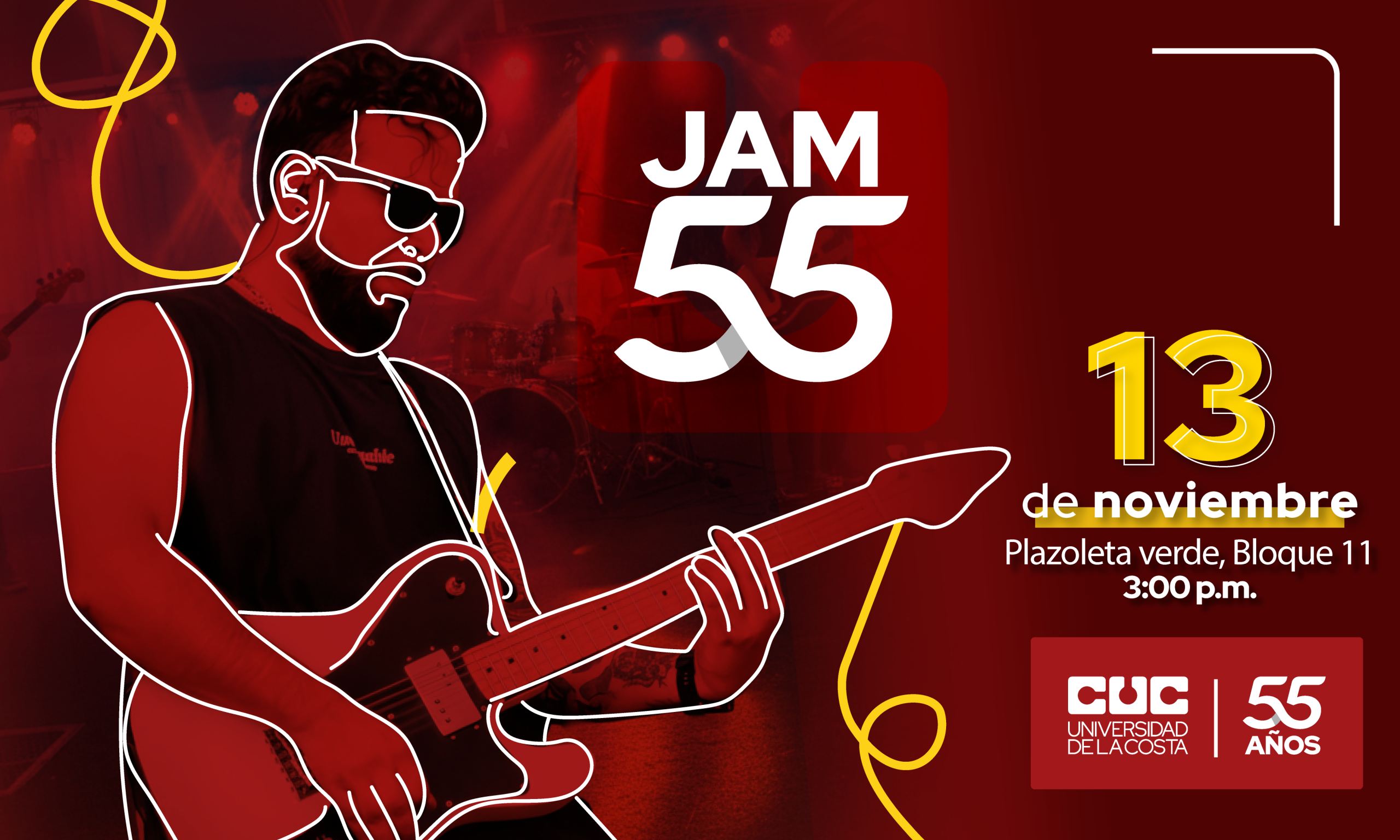 En el marco de la celebración de los 55 años de la Universidad de la Costa, te invitamos a disfrutar esta tarde del Jam 55, un espacio musical para compartir, celebrar y vivir juntos el espíritu que nos une como comunidad CUC.