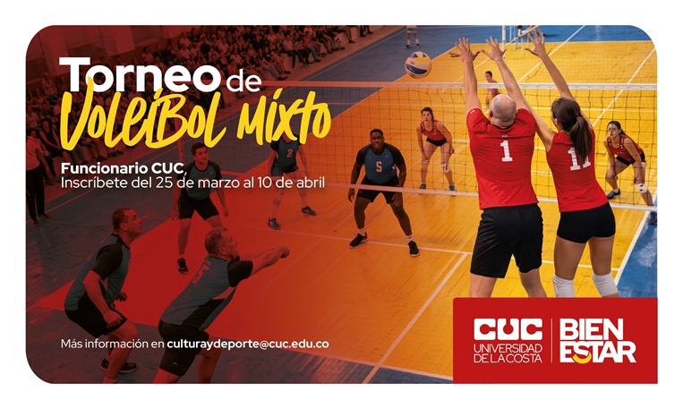 Colaborador CUC te invitamos a participar en el torneo de voleibol mixto, un espacio deportivo que promueve la integración, el trabajo en equipo y la sana competencia dentro de nuestra comunidad universitaria.