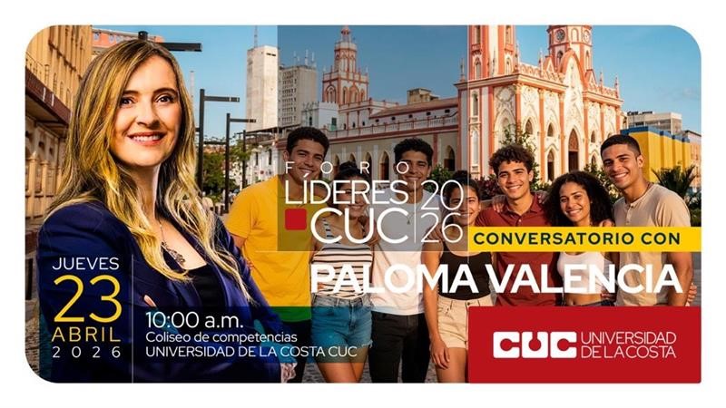 Este jueves 23 de abril a las 10:00 a. m., te esperamos en el Coliseo de Competencias de la Universidad de la Costa para vivir un nuevo espacio de Líderes CUC 2026, en esta ocasión con la participación de Paloma Valencia.